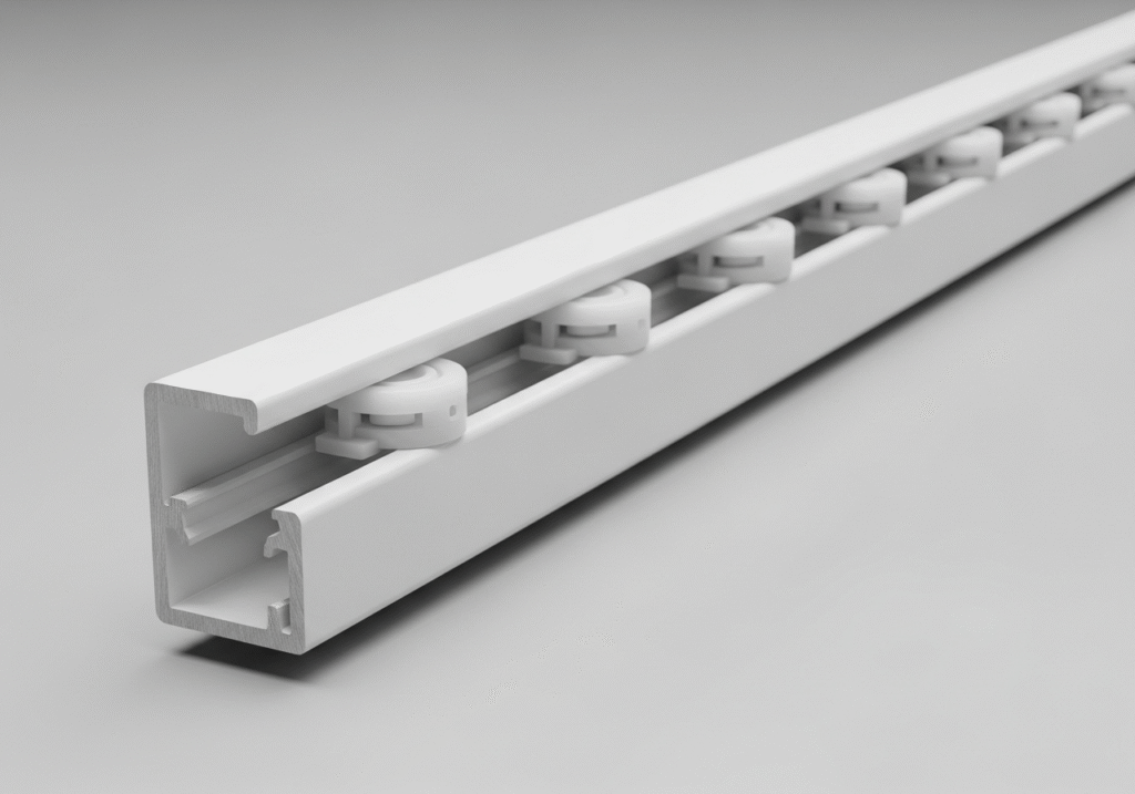 - Material and Weight Capacity: High-grade PVC with an internal metal spine. Supports light to medium curtains.